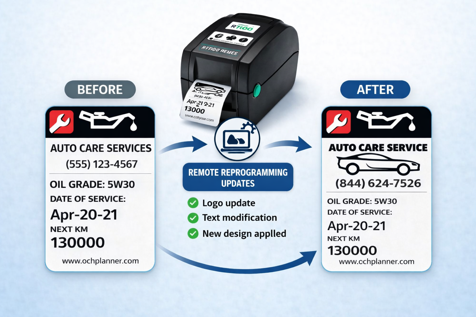 Service de reprogrammation de l’imprimante permettant d’adapter et de faire évoluer les modèles d’impression du kit autonome selon les nouveaux besoins des ateliers (ajout de logo, modifications de contenu, ajustements visuels, etc.).